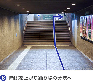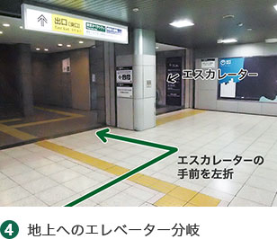 改札を出たら通路を直進してください。その後、突き当りを左折してください。