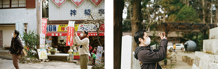 車を降りて石段を上り始めると、すぐに上村さんと伊達さんが写真を撮り始めた。口数も減り、二人とも一心にシャッターを切っている。まるで、目に見えるものすべてを稽古場に持ち帰ろうとしているようだった。