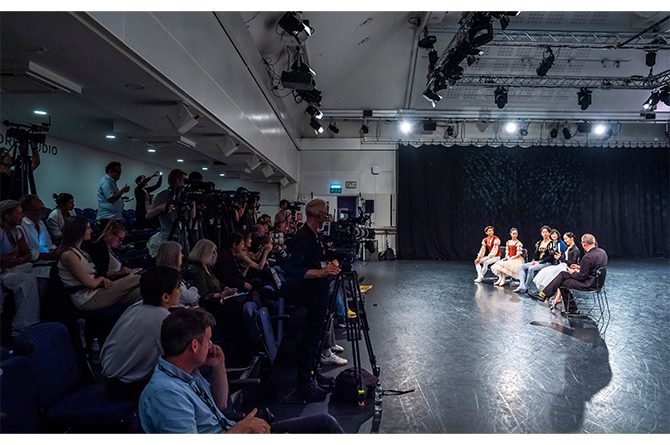 また、本番に先立つ7月22日には、リハーサル室にてPress Showcase(プレス向け発表会)が行われました。吉田都舞踊芸術監督と出演ダンサーによるトークでは、新国立劇場バレエ団が英国ロイヤルオペラハウスで公演を行う意義や、今回上演する『ジゼル』の魅力について語られました。あわせて、ダンサー2組による一部シーンの披露も行われ、本公演への期待が醸成されました。