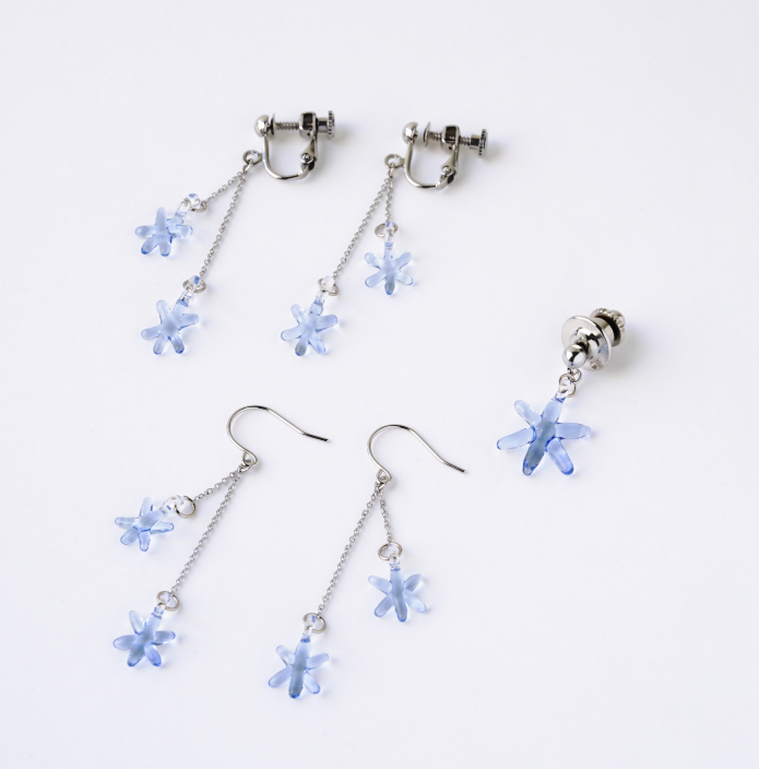 ピアス、イヤリング、ブローチの3種類の展開です。