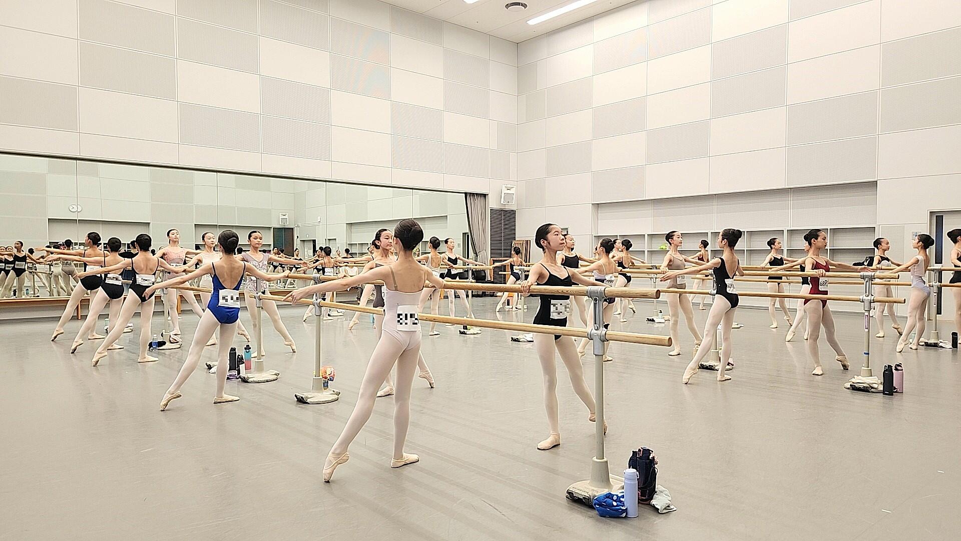 当レッスンは、プロをめざす13歳から18歳(2026〈R8〉年4月1日時点)までの方々にむけたレッスンで、年齢別クラスに分かれて、研修所講師によるクラスレッスンやヴァリエーションレッスンを実施しました。