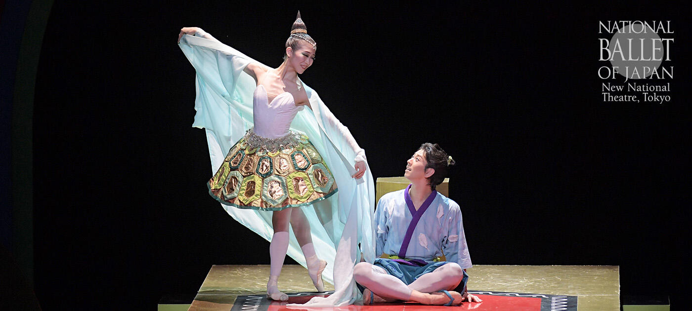 その部屋の四方の襖の向こうには、それぞれの四季の庭が広がっていて、四季の美しさを一度に堪能できるのです。長い時間入ってはいけないこの部屋に「少しだけ...」と入ってしまった太郎は、日本の四季に感動し、故郷の美しさをあらためて思い出します。我に帰った太郎は「故郷に帰らなければ」という思いを亀の姫に伝えます。泣く泣くその思いを受け入れた姫は、玉手箱を太郎に授け、別れを告げるのでした。「この玉手箱は、竜宮城に受け継がれてきた、大切な宝の箱。あなたへの愛の証をこの箱に閉じこめました。でも、決して開けてはいけません。」