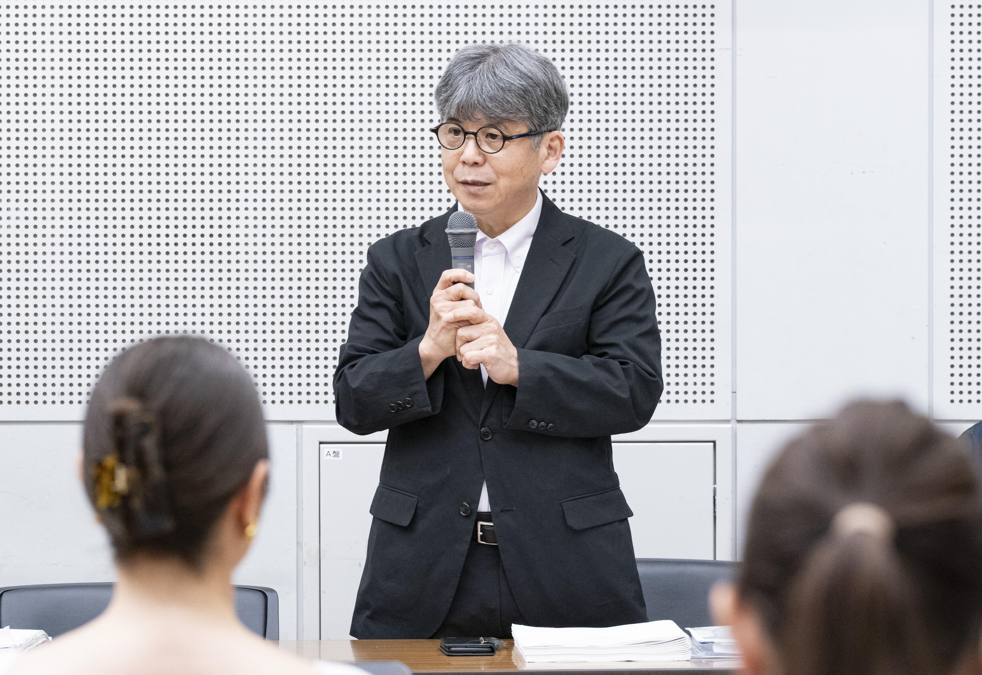 「待ちに待ったプロダクションという期待の声が沢山届いています。皆さんにお力をお借りして、素晴らしい舞台になるよう私も全力を尽くして参りたいと思います。まず、細川俊夫さんに大きな拍手をお願いいたします。