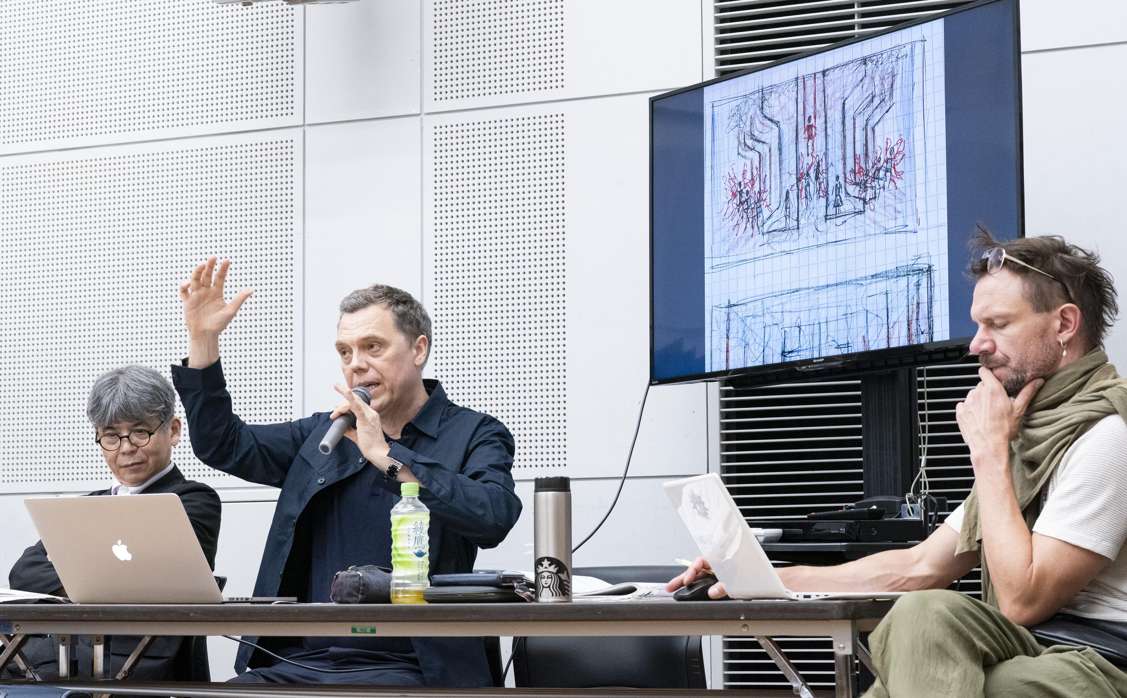 細川俊夫さん、多和田葉子さんと大野和士芸術監督のあいさつと、演出・音響のコンセプト説明の概要をお伝えします。