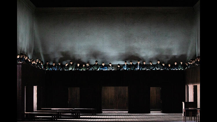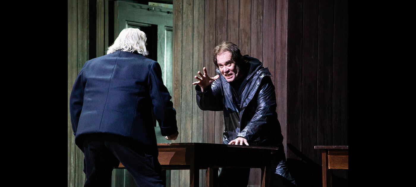 【第1幕】この事件以来、ピーターは村人たちから疎外されていたため、一人きりで漁もままならない状態となった。村のパブ「ボーア亭」に嵐を避けた村人たちが集まる中、エレンがピーターに、孤児院から連れて来た少年を新たな徒弟として引き渡す。