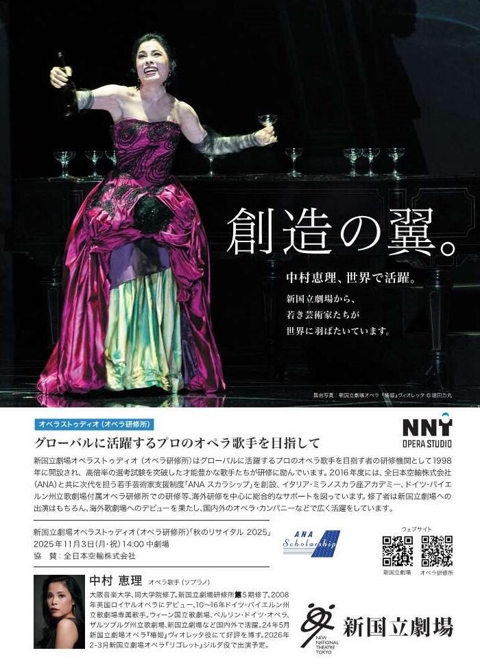次回の新国立劇場オペラストゥディオ(オペラ研修所) 公演は「秋のリサイタル 2025」〈11月3日(月・祝)〉(協賛:
