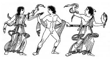 クリュタイメストラの死後、彼女の呪いを代行する「復讐の女神たち」が現われ、母殺しの罪を自らの命で贖えとオレステスに迫る。怯える彼に神アポロンは告げる。「アテネで裁判を受けよ」。こうして、オレステスを被告とした裁判が始まる。裁判長は女神アテナ、告発者は復讐の女神たち、弁護人はアポロン。アテネ市民が陪審員を務める。神と人間が混在する法廷。この現実離れした設定は神と人間の距離の近さを物語る。