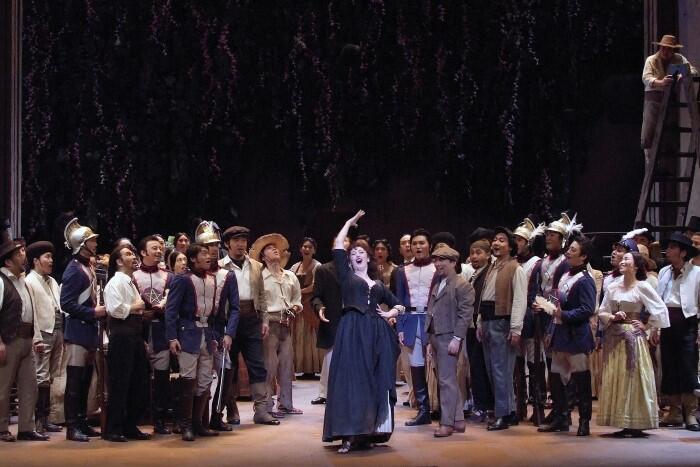 新国立劇場においても、開場当初より多くの作品で衣裳を手がけられました。開場記念公演のオペラ『建・TAKERU』や演劇『紙屋町さくらホテル』をはじめ、オペラ『黒船―夜明け』『カルメン』、演劇『コペンハーゲン』『ヘッダ・ガーブレル』『桜の園』など、数々の舞台で優れた才能が発揮されました。氏の卓越したデザインと作品への深い理解に基づく衣裳は、観客のみならず、スタッフ・キャストからも厚い信頼と高い評価を受けてきました。