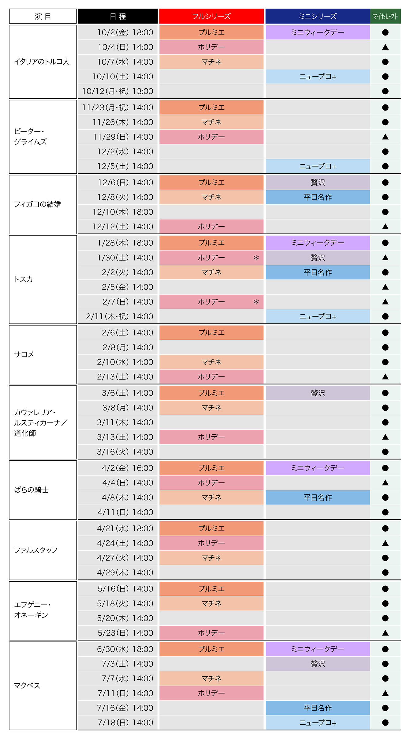 (対象演目:『フィガロの結婚』『トスカ』『カヴァレリア・ルスティカーナ/道化師』『マクベス』)