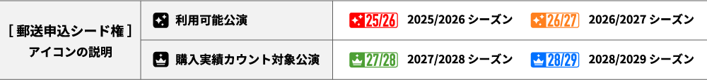 なお、アトレゴールド会員/個人維持会員、および直近の1年間に一定演目以上バレエ/ダンス公演をご覧になったアトレ会員/個人賛助会員には郵送申込シード権を付与しております。郵送申込シード権を獲得したアトレ会員/個人賛助会員の方は、インターネットではなく郵送でお申し込みください。